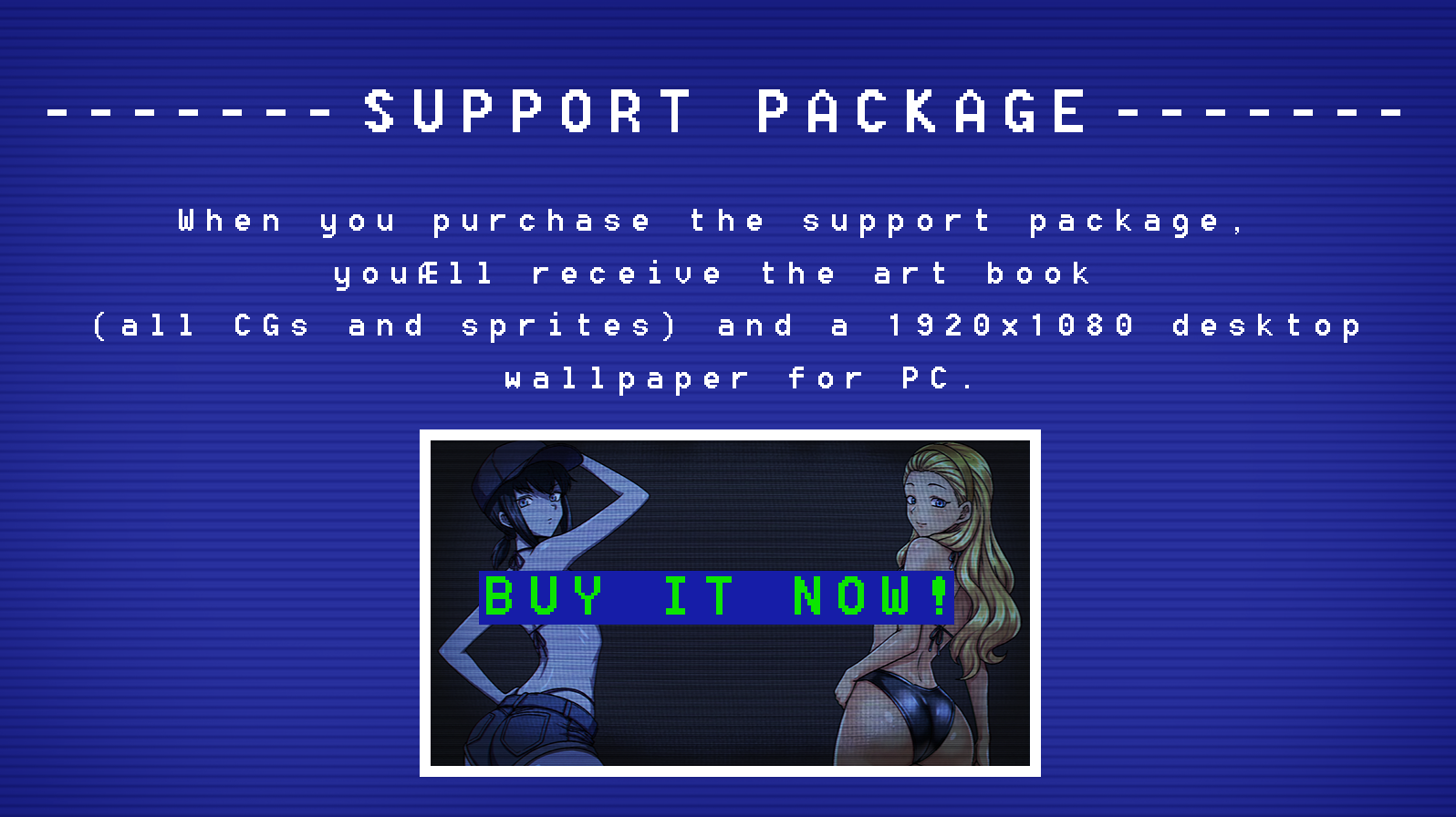 If you’d like to support me, you can purchase the support package, which includes the art book and PC wallpaper, or you can donate directly on my Ko-Fi page.